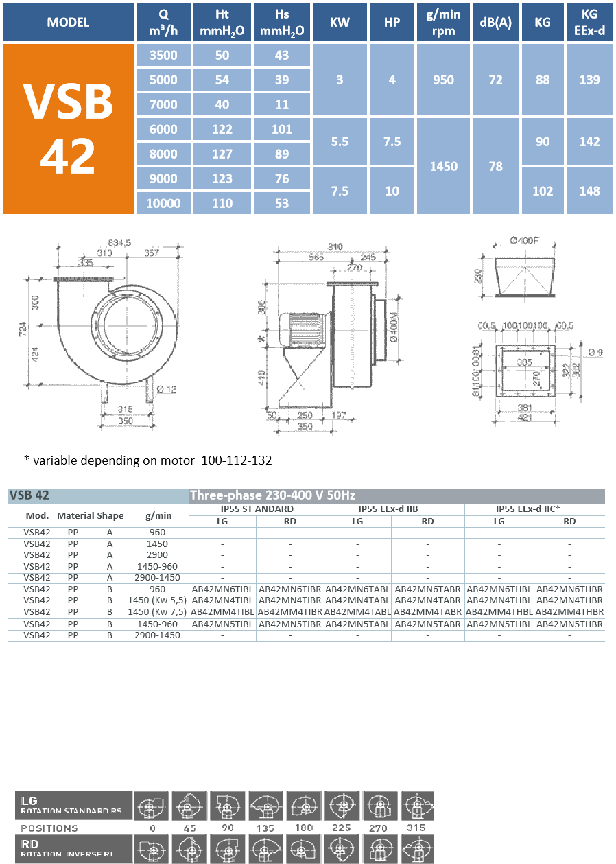 ✅ 高性能聚丙烯叶轮,带有前弯叶片,经静态和动态平衡,并带有加固的轮毂。
